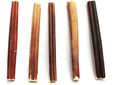 Ingredients: 100% bull pizzle Description: We hand-sort all of our bully sticks by weight, to ensure a consistent product. 6" standard bully sticks weigh 17 - 24 g. Recommended for: All life stages of dogs under 40 lbs....
