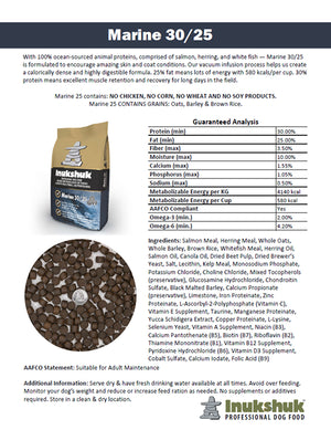 Marine 25 contains: NO CHICKEN, NO CORN, NO WHEAT AND NO SOY PRODUCTS.